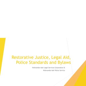 Restorative Justice, Legal Aid, Police Standards and Bylaws
